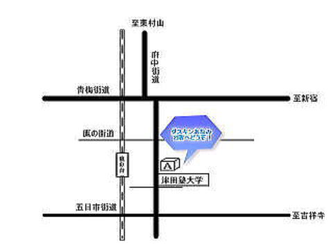 府中街道を渡り、府中街道沿いを南下すると、津田塾大学の手前に看板がでております。